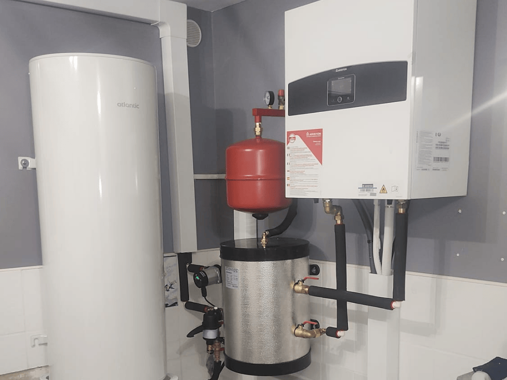 Même sans chaudière, l’ECS reste simple à produire : ballon électrique, ballon thermodynamique (sur air ambiant ou air extrait) ou pompe à chaleur air/eau en version duo avec ballon. Un échangeur transfère l’énergie, l’eau est stockée dans le ballon, avec priorité ECS et régulation de température pour le confort. Le chauffage des radiateurs et/ou du plancher chauffant peut continuer en parallèle. Le remplacement d’une chaudière fioul ou gaz est pris en charge, et nos équipes vous orientent vers la solution la plus adaptée à votre logement.